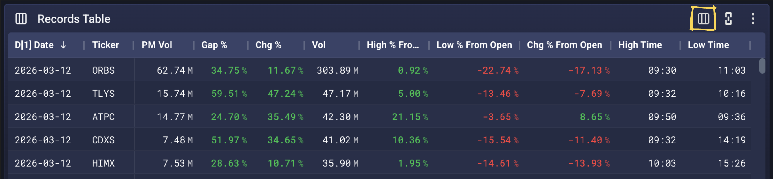 Customize Record Table