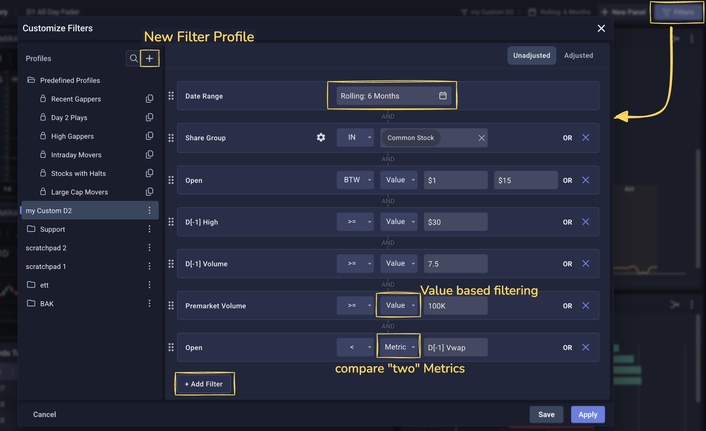 HISTORYFilters Click in the top right on the filter menu to make your adjustments, Or swap out a filter entirely for a different profile. Filter Setup Search & Add Filter