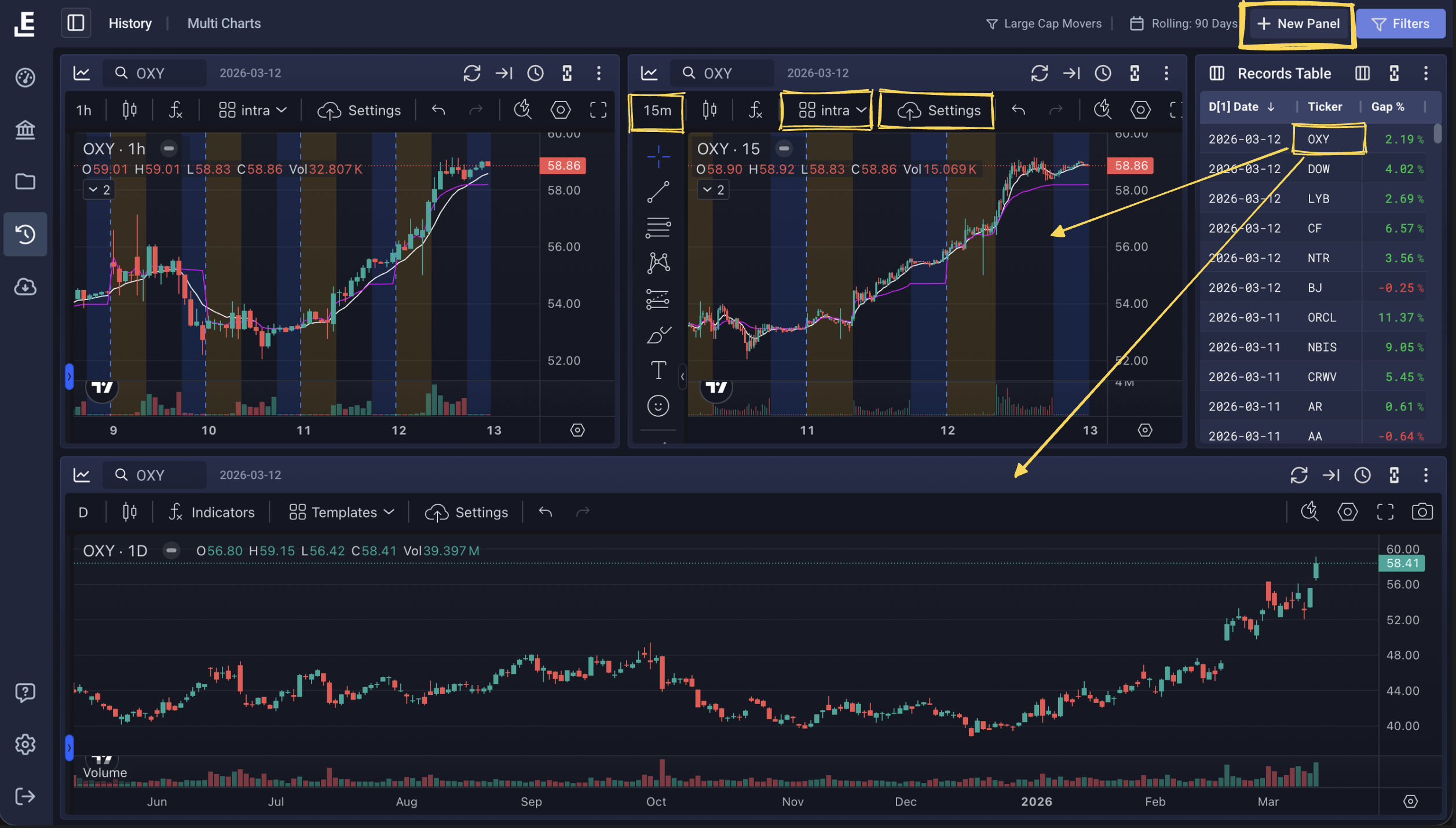 - Clicking any ticker in the record table will immediately load that day's chart data.